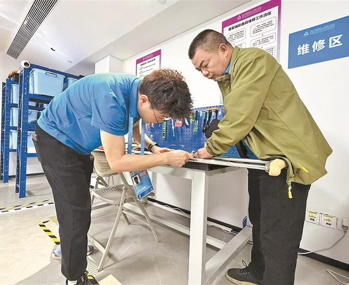 紧固螺丝、更换握把、给轮椅轮胎打气……残特奥会深圳赛区的各个赛场内外,总有一群默默忙碌的身影。他们用一次次精准维修、一个个贴心服务,为运动员们追梦之旅保驾护航。他们是深圳赛区康复辅具保障团队,也是运动员们的隐形守护者。