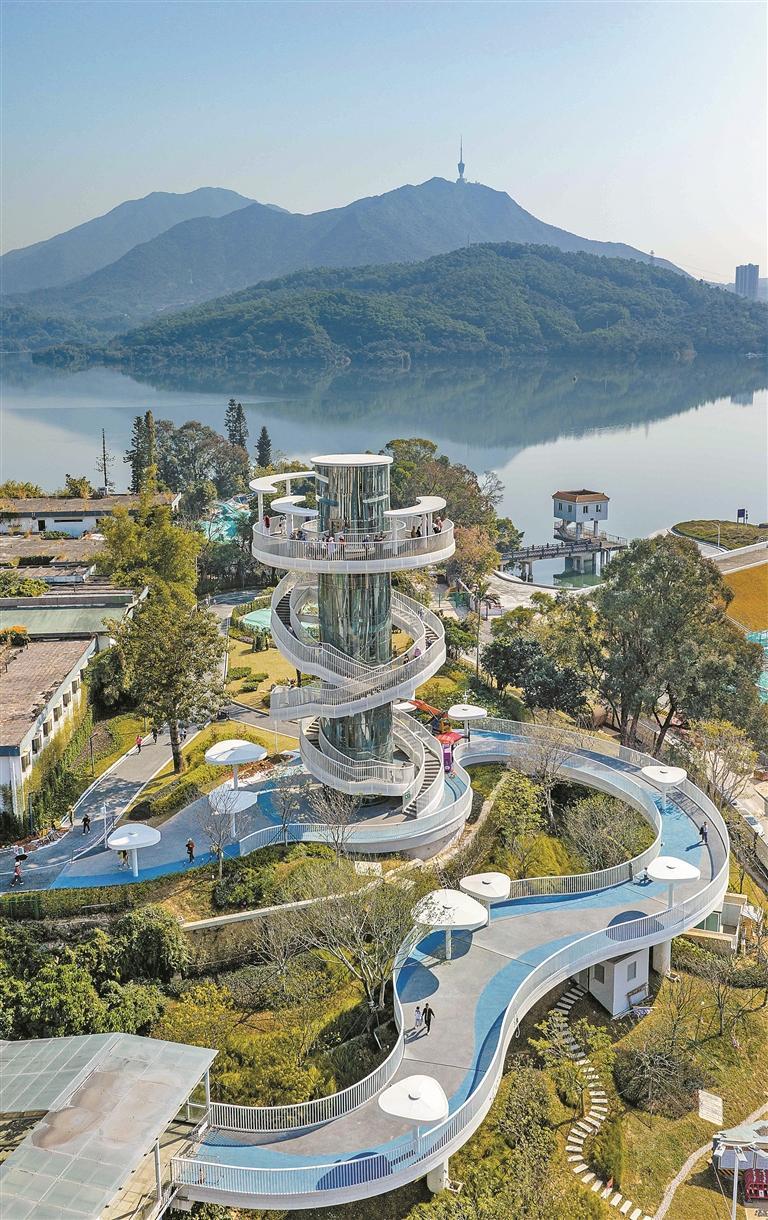 日前,罗湖区环深圳水库绿道(二期)的核心地标建筑——湖光塔向公众开放,该塔的设计灵感源于“湖光山色”与“天际流云”,旨在完美融入并展现深圳水库周边的自然生态之美。