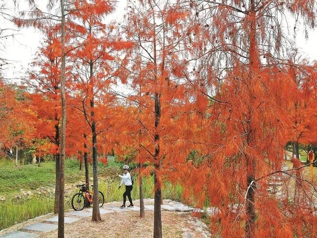 一月的大鹏新区坝光白沙湾公园,冬风轻拂,成片落羽杉悄然换色,深浅交织的暖调色彩宛如天然油画。不少市民游客专程驱车而来,漫步林间步道、定格美景,孩童在树下嬉戏,氛围感拉满。