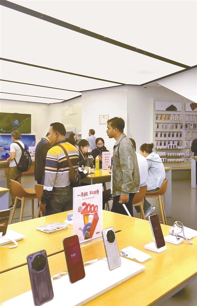 春节临近,深圳华强北商圈热闹非凡,大批国际客商被正在举行的科技年货节吸引,选购各式各样的智能产品。