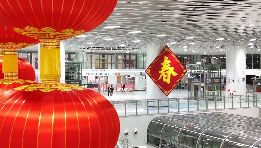 2026年春运大幕正式拉开,在深圳地铁岗厦北、大运等交通枢纽站,喜庆的新春装饰成为春运途中的一抹亮色。