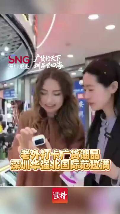 老外打卡广货潮品,深圳华强北国际范拉满。(深圳报业集团记者 张瑜 Marina 孙钰胜/视频 李旻桦/剪辑)