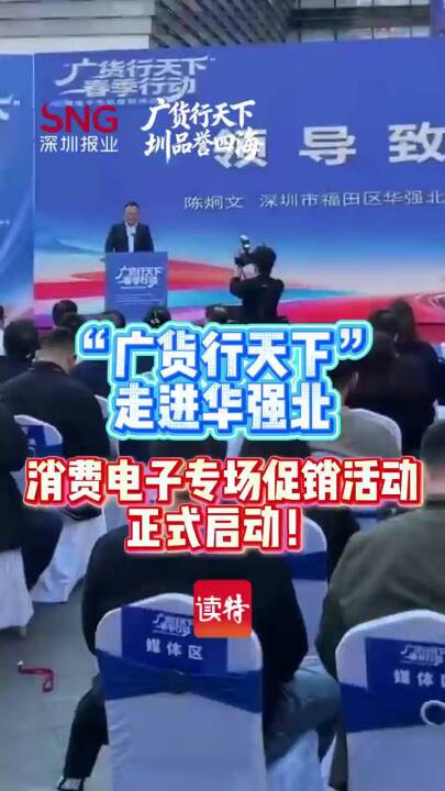 “广货行天下”走进华强北,消费电子专场促销活动正式启动! 1月25日下午,由广东省工业和信息化厅与深圳市人民政府联合主办的“广货行天下”春季行动消费电子专场在华强北正式启幕。 作为2026年广东工业消费品促消费活动的重要一站,本次活动汇聚华为、荣耀、影石、OPPO、vivo、小天才、科大讯飞等 50家省内消费电子领军企业,依托华强北成熟完备的电子产业生态,将展销场景直接嵌入最具活力的市场一线,集中
