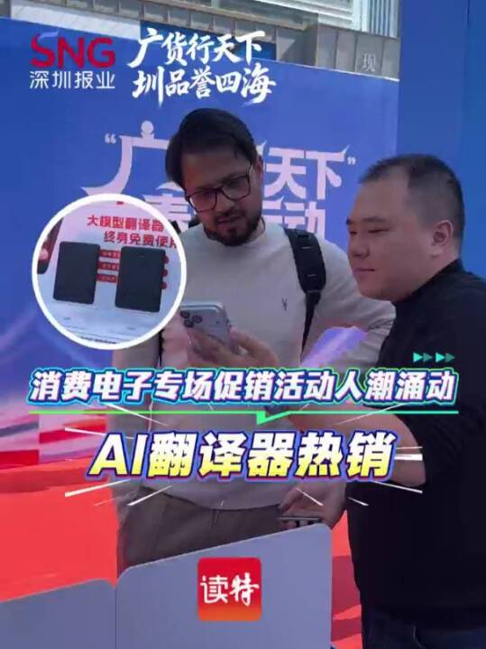 消费电子专场促销活动人潮涌动 AI翻译器热销在“广货行天下”春季行动现场,来自深圳的AI硬件受到消费者追捧。最多支持26种语言离线翻译,产品去年8月上新后即远销20多个国家和地区。(深圳报业集团记者 熊子恒 剪辑 庄莉芝)