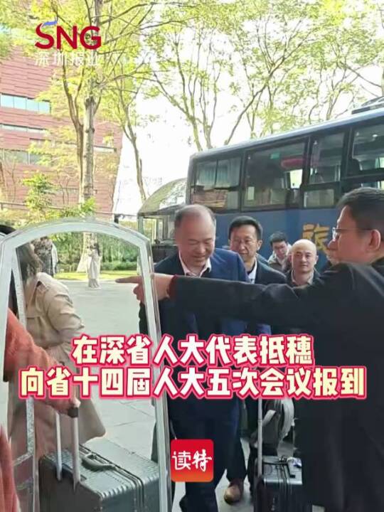 1月24日上午,在深省人大代表从市民中心集中出发,抵达广州白云国际会议中心,向省十四届人大五次会议报到。(深圳特区报&读特记者 李舒瑜 何龙 潘康 高驭哲)