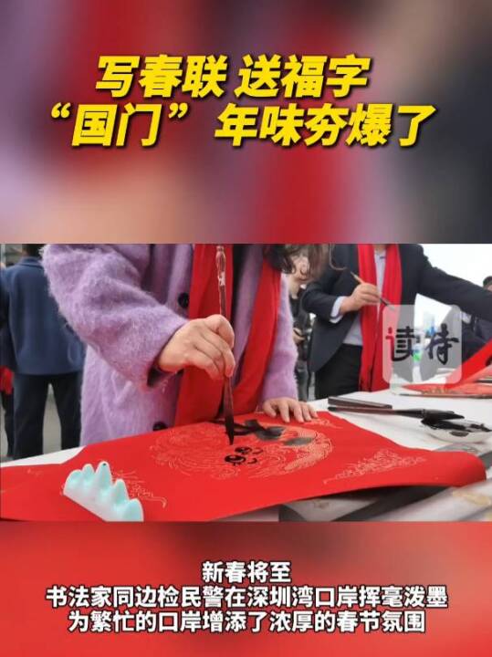 新春将至,书法家与边检民警在深圳湾口岸写春联、送福字,为“国门”增添了几分年味。(深圳特区报&读特记者 吴梓欣)