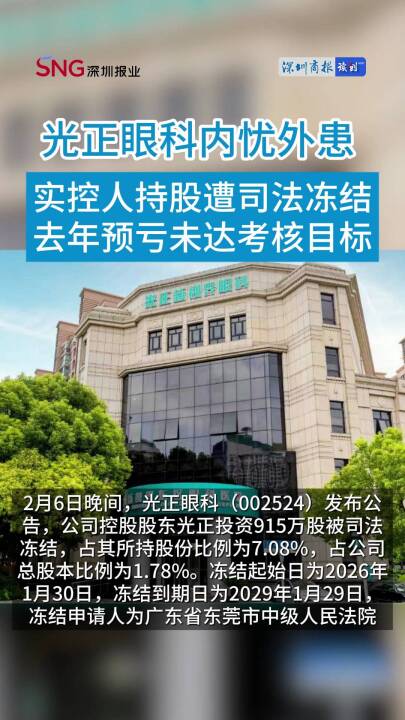 光正眼科内忧外患,实控人持股遭司法冻结,去年预亏未达考核目标 #光正眼科 #司法冻结