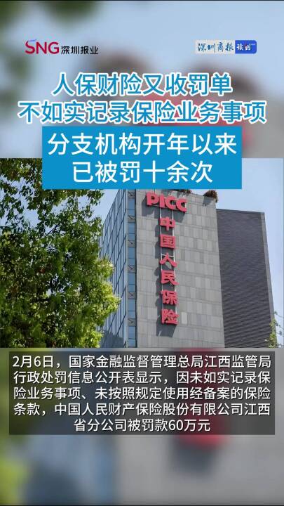 人保财险又收罚单,不如实记录保险业务事项,分支机构开年以来已被罚十余次 #人保财险 #处罚