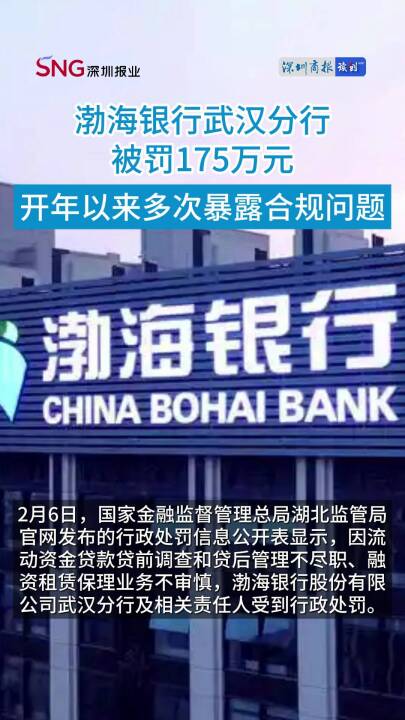 渤海银行再收罚单!因信贷及保理业务违规,其武汉分行被罚175万元 #渤海银行 #处罚