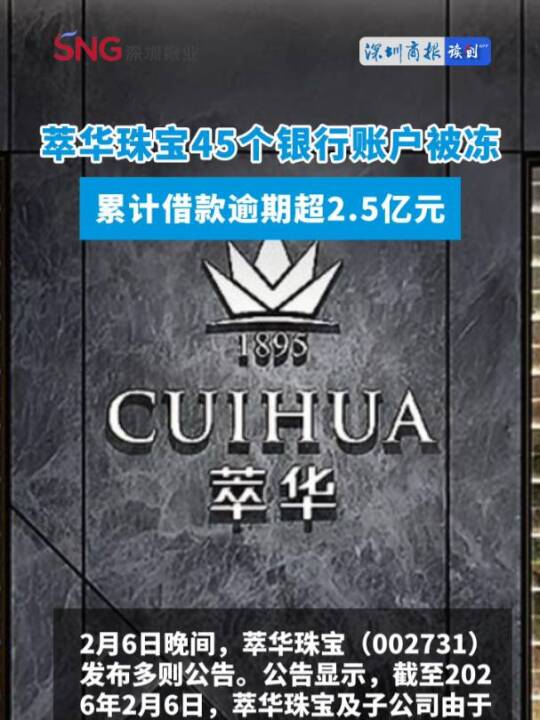 资金紧张困境何解?萃华珠宝45个银行账户被冻,累计借款逾期超2.5亿元 #萃华珠宝 #银行账户被冻 #上市公司