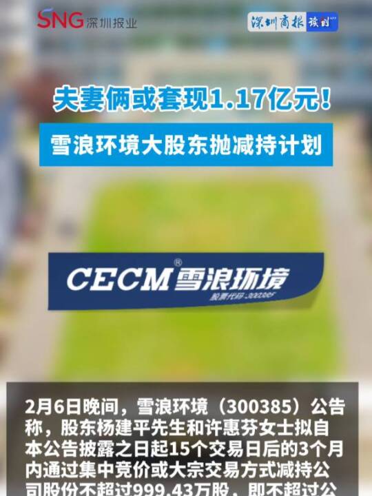 夫妻俩或套现1.17亿元!雪浪环境业绩亏损之际大股东抛减持计划 #夫妻套现 #雪浪环境 #上市公司