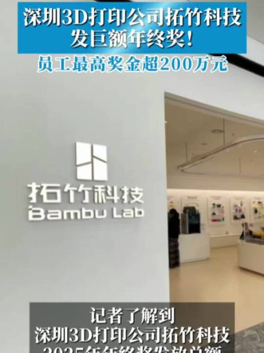 深圳3D打印公司拓竹科技发巨额年终奖!员工最高奖金超200万元。#年终奖 #科技 #拓竹科技