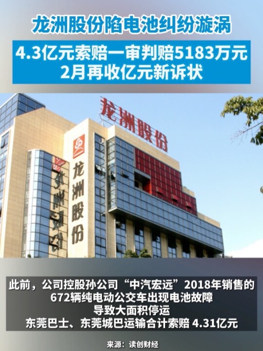 龙洲股份陷电池纠纷漩涡,4.3亿索赔一审判赔5183万,2月再收亿元新诉状。#龙洲股份 #电池 #新能源