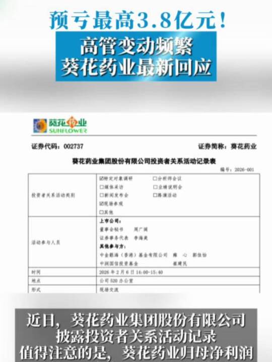 预亏最高3.8亿元!高管变动频繁,葵花药业最新回应! #葵花药业 #制药 #股票