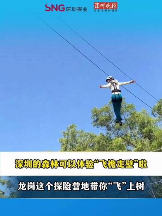 近期,在龙岗区园山街道,树间跳动森林探险营地深圳店开业。营地专业打造出系列树上探险线路,让市民在林间尽情体验“飞檐走壁”。(深圳报业集团记者 苏靖驹)
