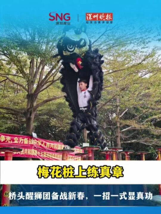 梅花桩上练真章!桥头醒狮团备战新春,一招一式显真功(深圳报业集团记者 冀静波 谭钧仁)