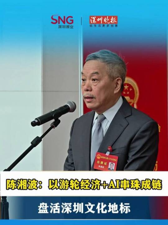 陈湘波:以游轮经济+AI串珠 盘活深圳文化地标陈湘波指出,深圳在“十四五”期间建设了深圳湾文化广场、湾区书城、冰雪世界等世界级文化设施,当前需将其转化为吸引游客和市民的文化空间。他提出两个战略方向:一是发展游轮经济,将蛇口打造成沉浸式戏剧空间,吸引国际游轮并打造主题化船岸互动文旅新业态;二是利用AI串联文化地标,如通过“串珠成链”模式联动艺术产品与街区,活化工业遗址和移民文化,并引入王者荣耀等IP