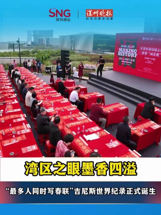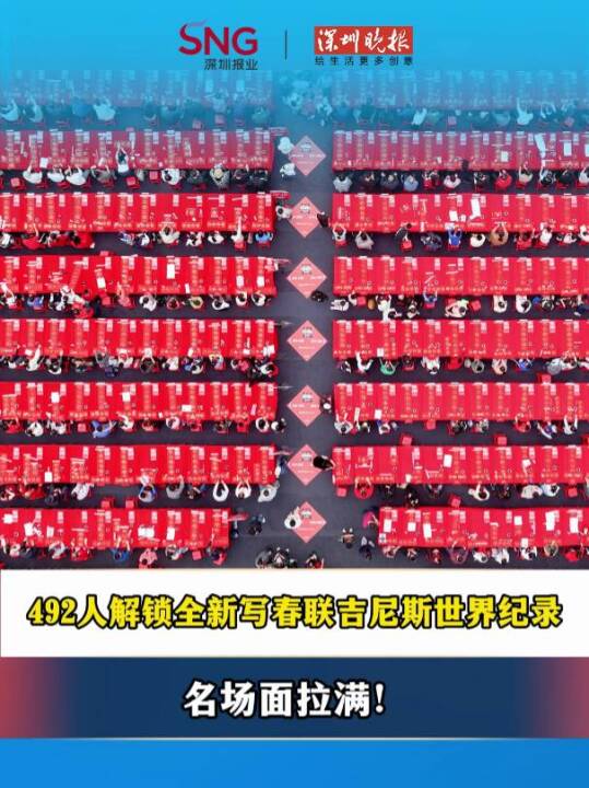 492人解锁全新写春联吉尼斯世界纪录,名场面拉满!2月7日,数百名书法爱好者齐聚湾区之眼,挑战“最多人同时写春联”吉尼斯世界纪录,最终以492人的成绩成功!醒狮开场、百人挥毫、名家送福,每一幕都氛围感拉满!笔墨流转间,是千年文脉的传承;红纸黑字里,是湾区新春的暖意。(深圳报业集团记者 陈仪衡 唐尧 庄莉芝)
