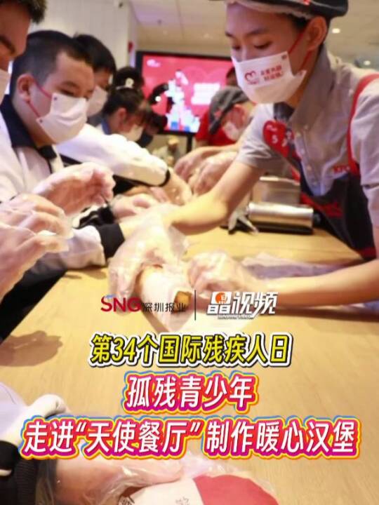 12月2日,在第34个国际残疾人日到来之际,深圳福田区福民路的肯德基天使餐厅里暖意融融,一场“肯定有爱·天使餐厅特别体验日”主题活动在此举行。来自深圳市社会福利服务指导中心的5位孤残青少年走进“天使餐厅”,了解餐厅运营的多个环节,亲手制作爱心汉堡。在与“天使员工”的交流中,这群青少年们对“残健共融、一起自在”的理念有了更深的理解。(深圳报业集团记者 潘凌霄 实习生 杨成聪 焦书琦 )