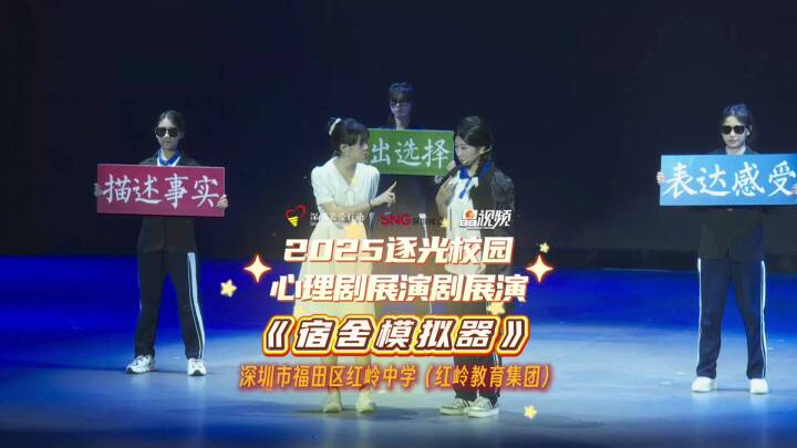 逐光校园心理剧佳作展演⑤|深圳市福田区红岭中学(红岭教育集团)——《宿舍模拟器》主题:自我成长剧情以互动游戏的形式展开,讲述一名即将进入高中的学生,试玩一款“模拟宿舍生活”的游戏,在虚拟世界中,与舍友林悦、蒋槐花、齐恒昭、薛纪学等人共同经历闹钟冲突、学习压力、误解与背后议论等日常矛盾。玩家在一次次“选项”中体验沟通的得失与关系的修复,最终在心理学大师林悦的引导下,学会用非暴力沟通的方式表达自我、理