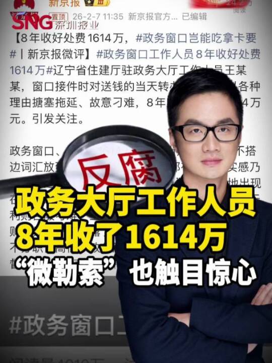 彭健观察丨政务大厅工作人员8年收了1614万,“微勒索”也触目惊心 #政务服务 #办证 #反腐 #专项巡查
