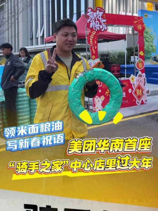 2月11日,正值农历小年,美团华南首个面向全行业骑手开放的“骑手之家”(中心店)在广东深圳正式揭幕。100余名全行业外卖骑手聚在刚刚开业的“骑手之家”里,一同写春联、看舞狮、吃年饭,现场还向骑手们发放米面粮油、零食礼盒和年货特产。