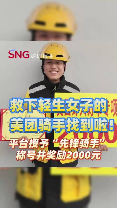 救下轻生女子的美团骑手找到啦!平台授予“先锋骑手”称号并奖励2000元
