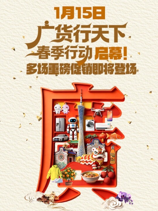1月15日,广东将在佛山(潭州会展中心)举行“广货行天下”春季行动发布会暨家电专场促销活动,拉开2026年度广东产品线上促销活动的序幕。一系列活动具体有何亮点?戳视频速览#广货行天下 #广货