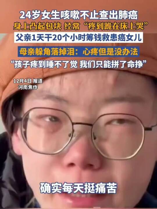 #24岁女生咳嗽不止查出肺癌 ,身上凸起包块,经常疼到跪在床上哭,#父亲1天干20个小时筹钱救 (新晚报)