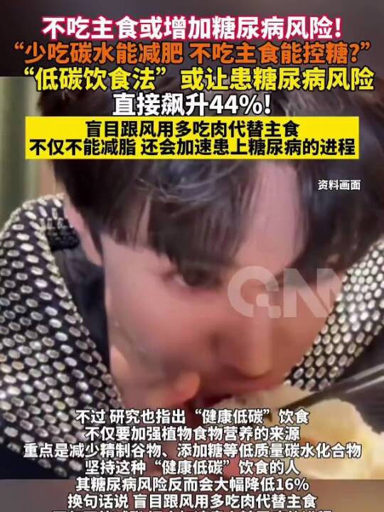 不吃主食或增加糖尿病风险! “低碳饮食法”或让患糖尿病风险直接飙升44%! (青岛新闻网)