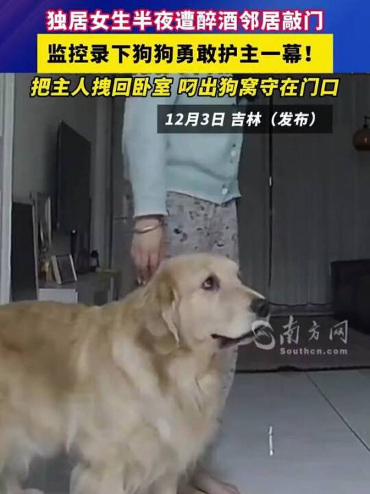 独居女生半夜遭醉酒邻居敲门,监控录下狗狗勇敢护主一幕:把主人拽回卧室,叼出狗窝守在门口 (南方网)