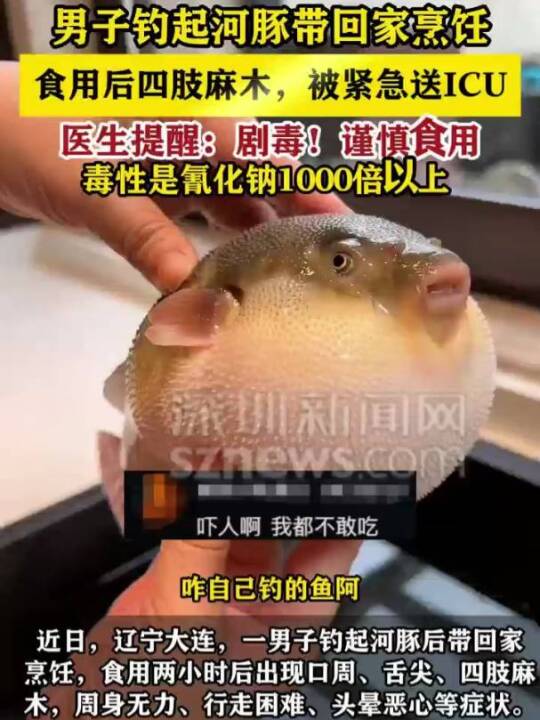 【男子钓河豚带回家食用后中毒进ICU】制作 黎昭欣 审核 何畅 吴沁彤 郑创彬来源 纵览新闻 大连急诊科纪颍医生画面来源网络侵删