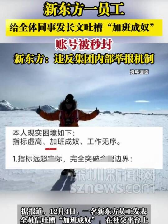 【新东方一员工给全体同事发长文吐槽“加班成奴”】制作 王晓林审核 何畅 吴沁彤 郑创彬来源 极目新闻