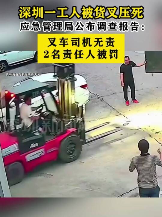【深圳一工人被货叉压死,叉车司机无责】编辑:葛雯萱审核:何畅 吴沁彤 郑创彬来源:龙华区应急管理局画面来源网络侵删