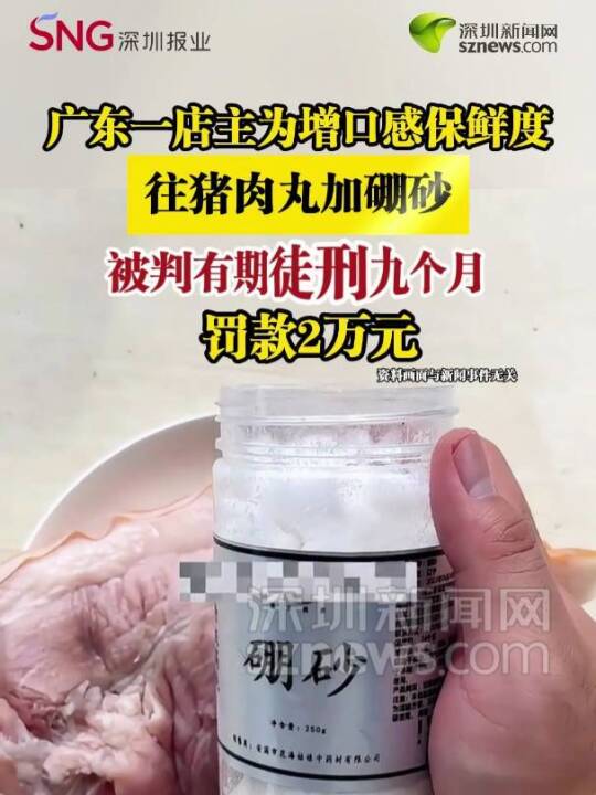 【广东一店主为增口感保鲜度往猪肉丸加硼砂,被判有期徒刑九个月】(制作 王晓林;审核 葛雯萱 陈苏雅 孙研)