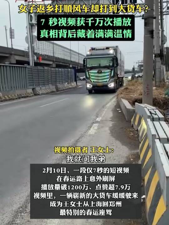 #女子返乡打顺风车却打到大货车 ?7 秒视频获千万次播放,真相背后藏着满满温情(大风新闻)
