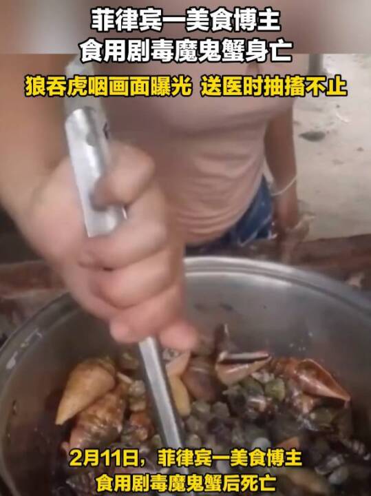 菲律宾一美食博主食用剧毒魔鬼蟹身亡:狼吞虎咽画面曝光 送医时抽搐不止(新京报)