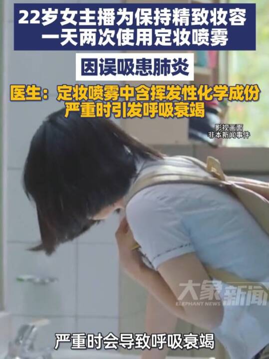 22岁女主播为保持精致妆容一天两次使用定妆喷雾,因误吸患肺炎,医生:定妆喷雾中含挥发性化学成份,严重时引发呼吸衰竭(大象新闻)