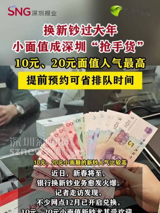 【换新钞过大年,小面值成“抢手货”】(制作:何润 审核:何畅、吴沁彤、郑创彬 来源:深圳新闻网记者 汤莎)