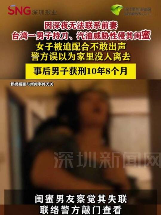 【台湾一男子持刀、汽油威胁性侵前妻闺蜜】获刑10年8个月。(编辑:葛雯萱 审核:何畅 马丹 郑创彬)