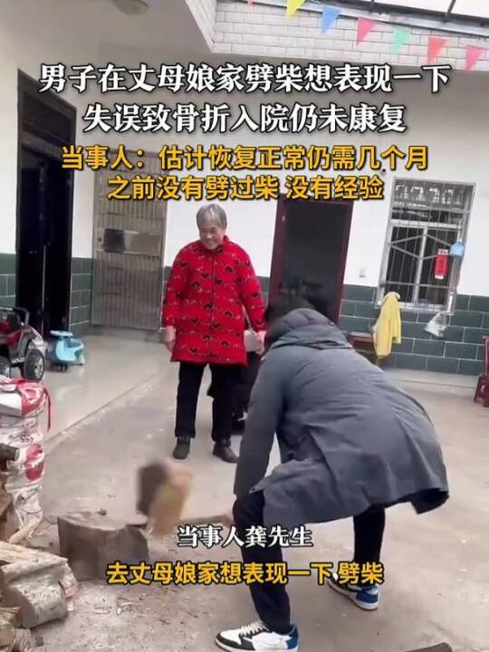#男子在丈母娘家想表现一下劈柴失误致骨折 ,仍未康复,当事人:估计恢复正常仍需几个月,之前没有劈过柴,没有经验(荔枝新闻)