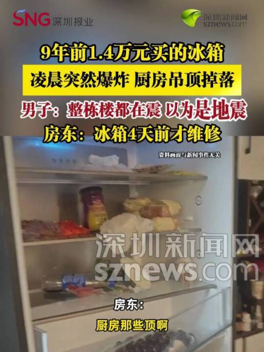 【9年前1.4万元买的冰箱,凌晨突然爆炸 厨房吊顶掉落】(制作 王晓林;审核 何畅 马丹 郑创彬)