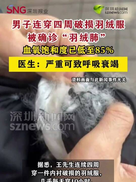 【男子连穿四周破损羽绒服确诊“羽绒肺”】(制作:何润 审核:何畅、马丹、郑创彬)
