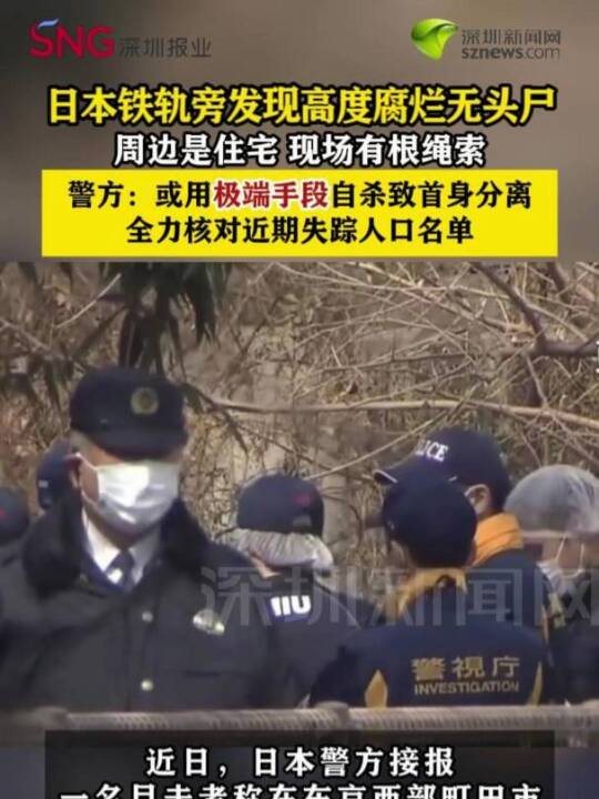 【日本铁轨旁发现高度腐烂无头尸】警方:或用极端手段自杀致首身分离,全力核对近期失踪人口名单。(编辑:葛雯萱;审核:何畅 马丹 郑创彬)