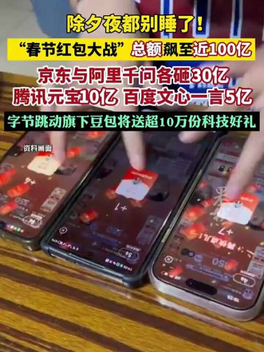除夕夜都别睡了!#“春节红包大战”总额飙至近100亿 (极目新闻、齐鲁晚报)