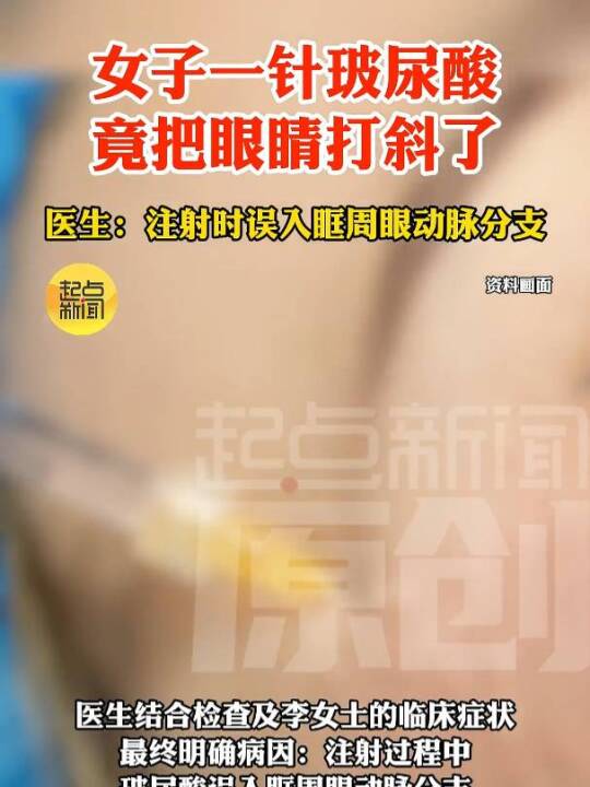 #女子一针玻尿酸竟把眼睛打斜了 医生:注射时误入眶周眼动脉分支(起点新闻)
