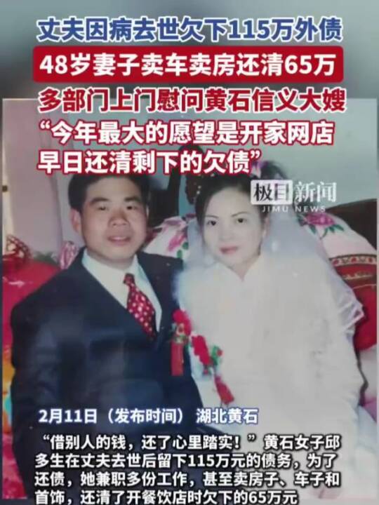 丈夫因病去世欠下115万外债,48岁妻子卖车卖房还清65万(极目新闻)