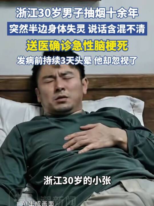 抽烟10多年,浙江30岁男子突发脑梗!发病前持续3天头晕,他却忽视了(潮新闻)