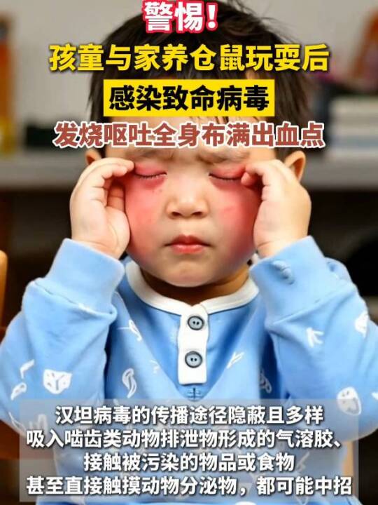 警惕!孩童与家养仓鼠玩耍后感染致命病毒,发烧呕吐全身布满出血点(广州日报)