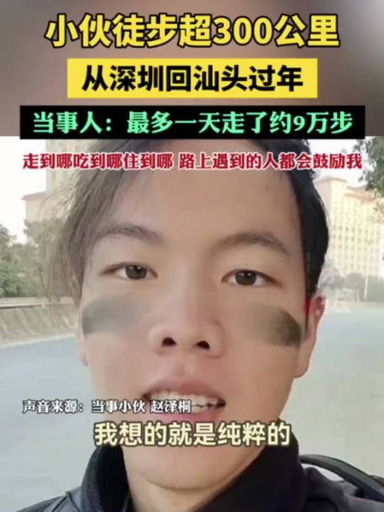 小伙徒步超300公里从深圳回汕头过年:最多一天走了约9万步。(齐鲁晚报)